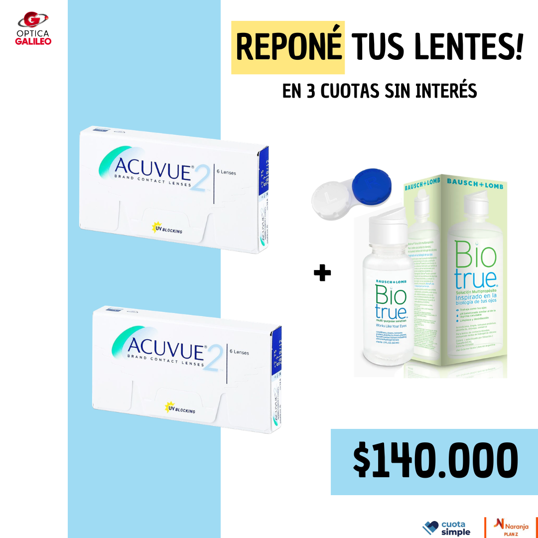 PROMO LENTES DE CONTACTO DESCARTABLES – 2 CAJAS DE ACUVUE 2 + BIOTRUE 60ml